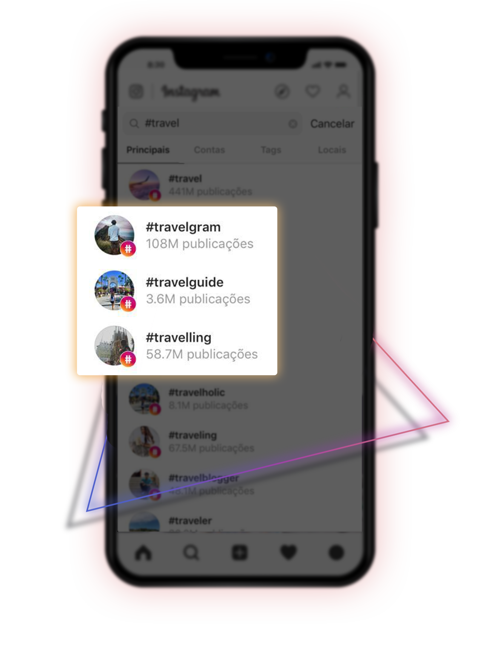 Definimos as melhores hashtags para utilizar nas suas publicações visando o público alvo e aumentando o alcance das suas postagens;